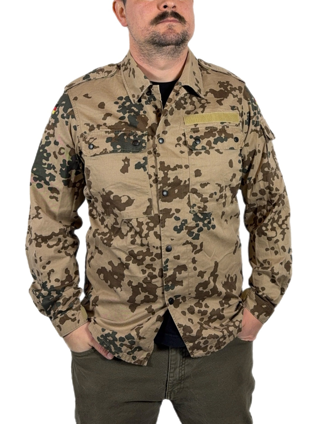 These shirts are nearly identical to standard Flecktarn field shirts, with minor variations such as mesh-ventilated armpits on some models. They are less common on the surplus market and make an excellent everyday field shirt.