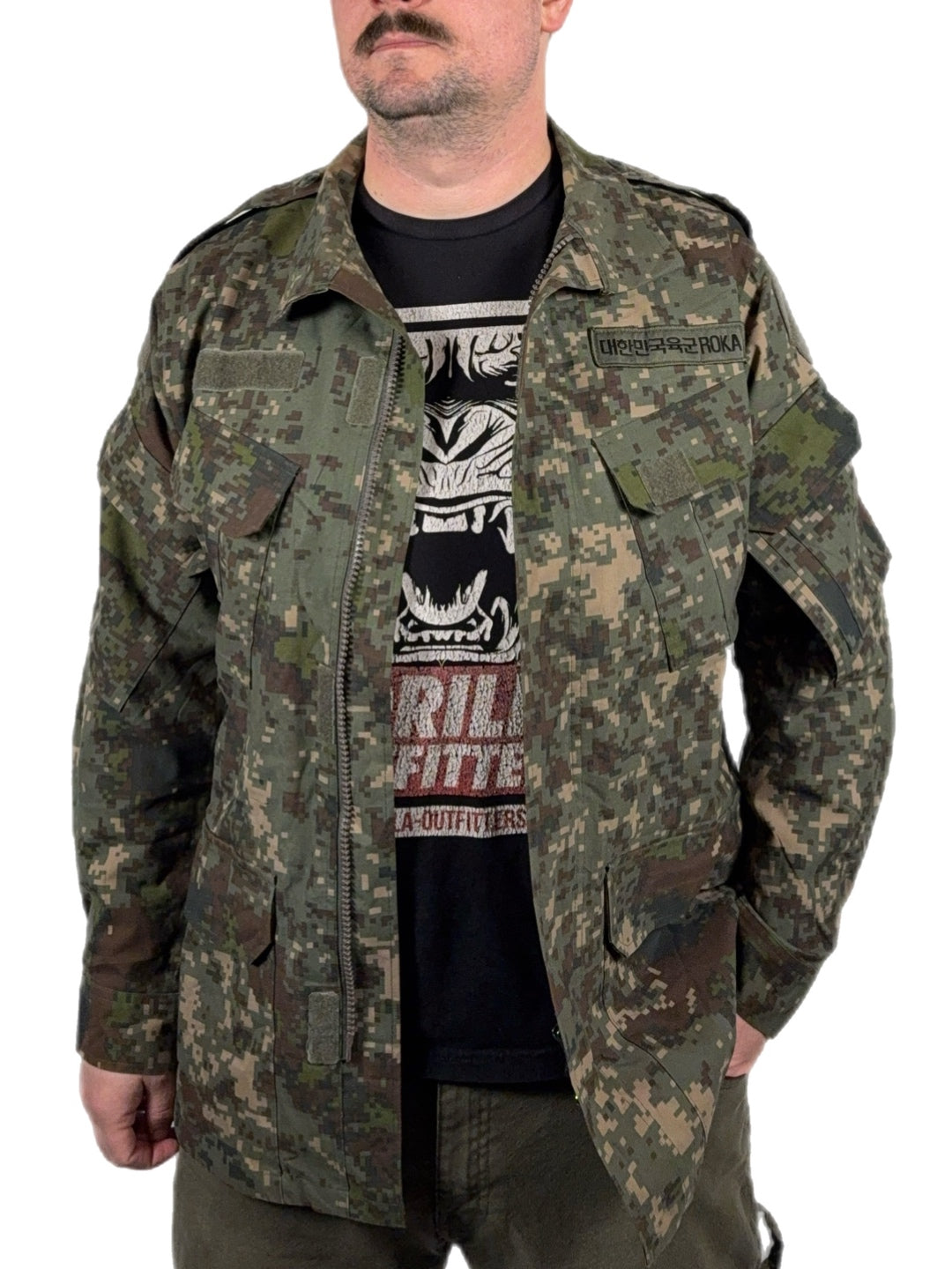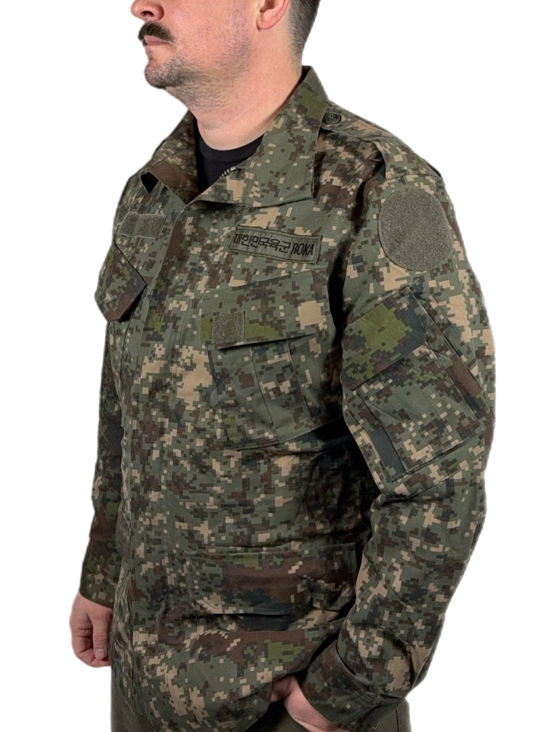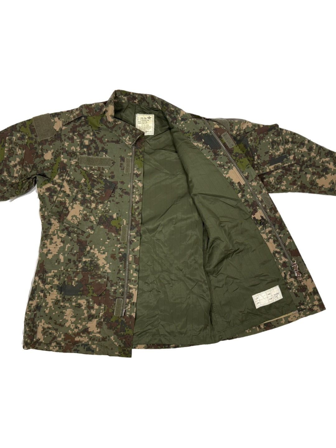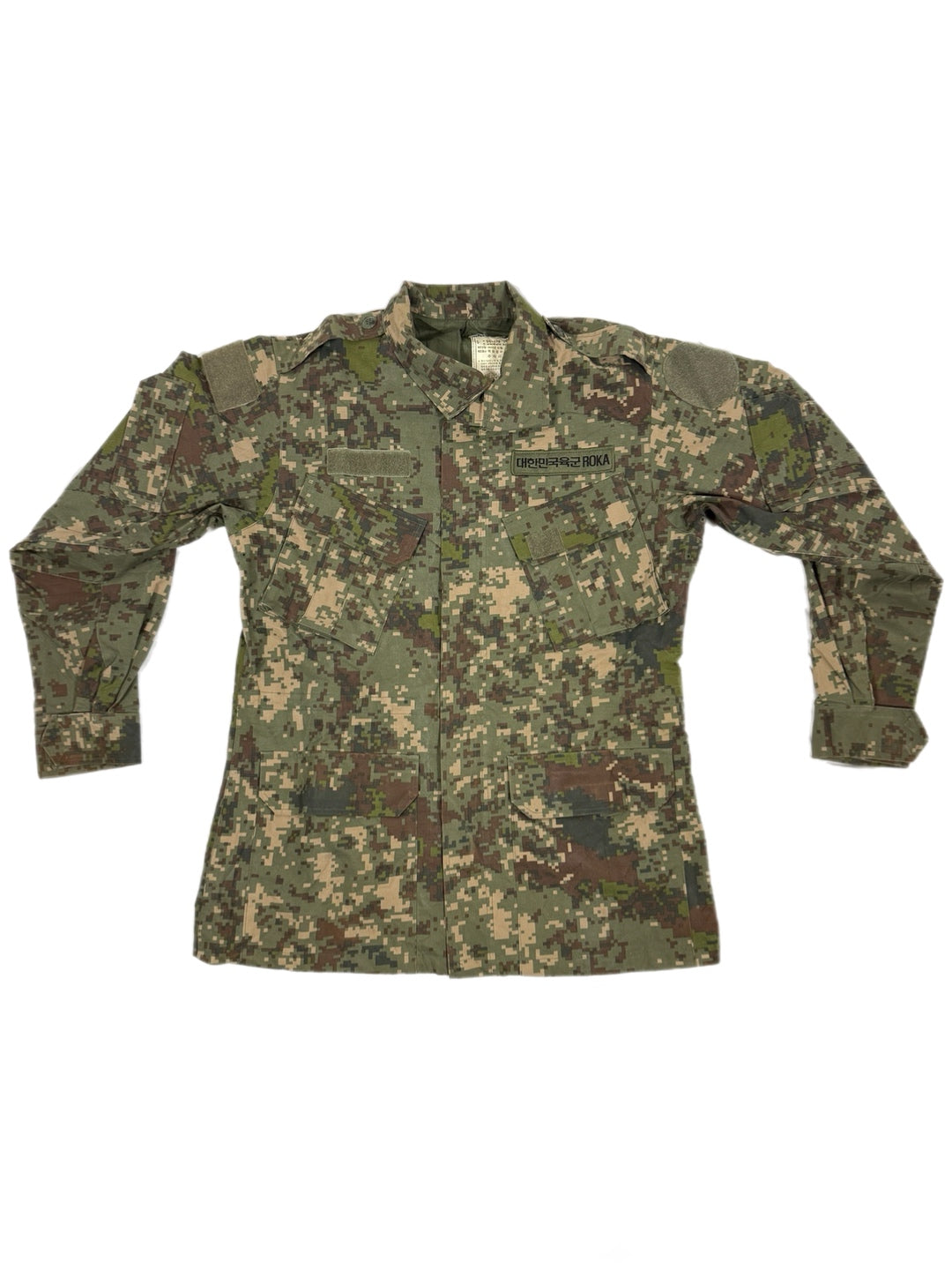 Constructed from a durable, treated cotton-blend fabric, the jacket offers wind resistance while remaining breathable enough for active use. The Granite B digital camouflage was developed specifically for Korea’s rocky, mountainous terrain and urban environments, giving it a distinct appearance compared to common U.S. digital patterns.