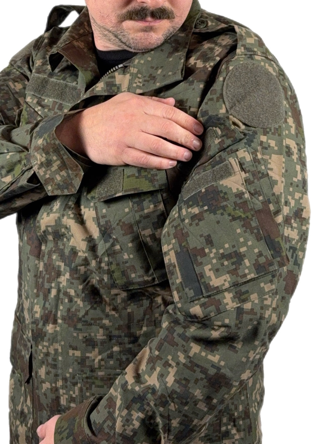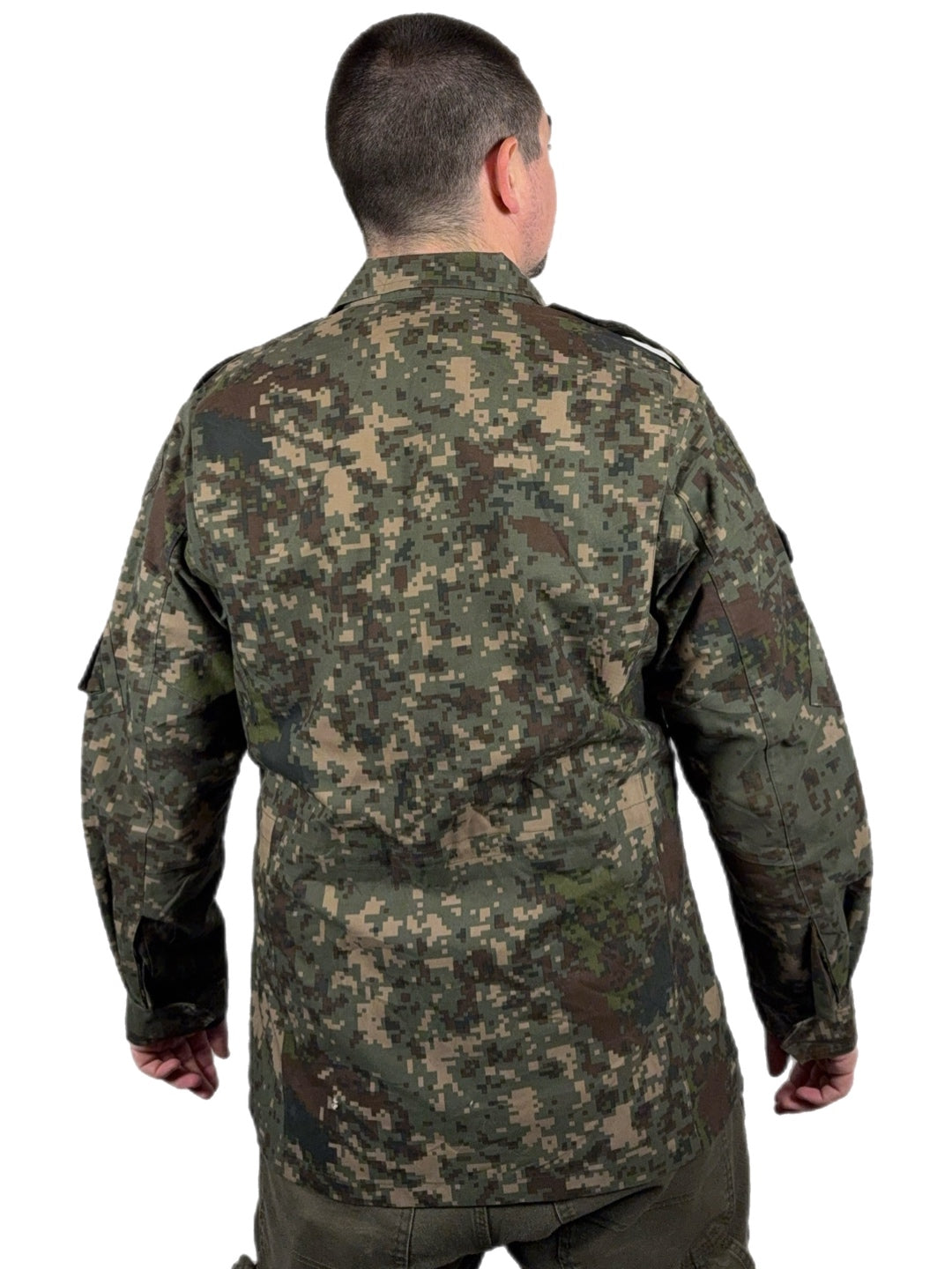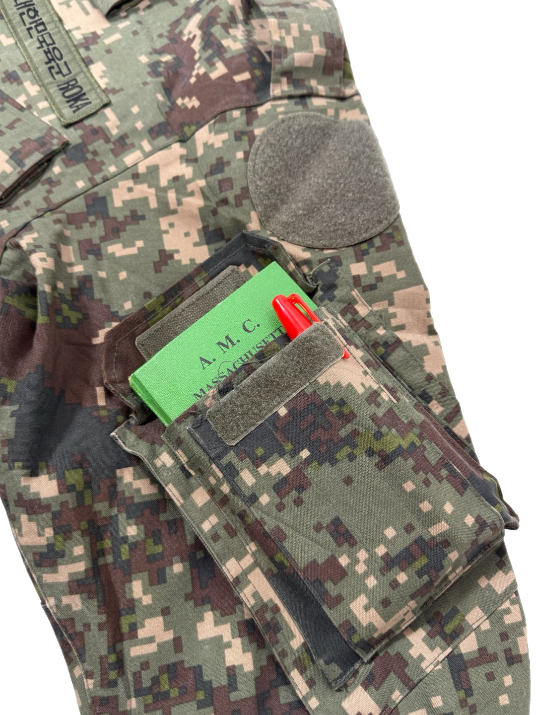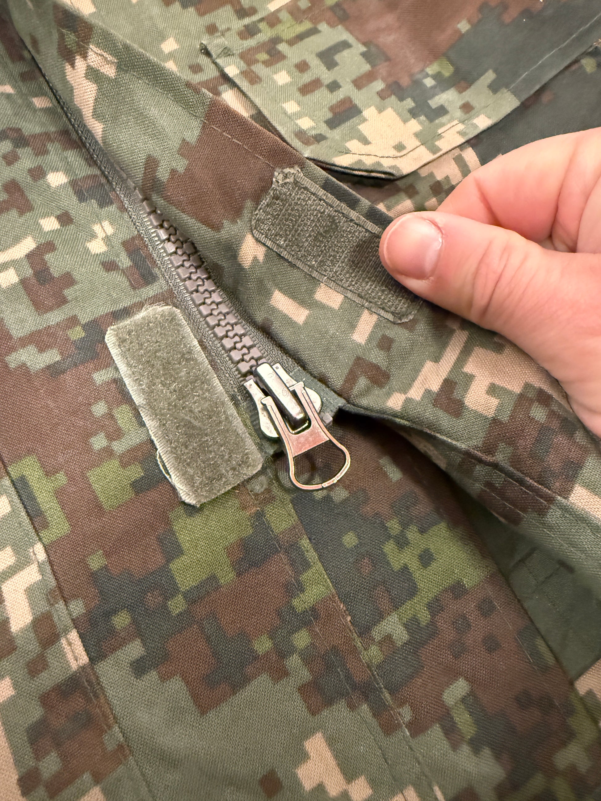 Constructed from a durable, treated cotton-blend fabric, the jacket offers wind resistance while remaining breathable enough for active use. The Granite B digital camouflage was developed specifically for Korea’s rocky, mountainous terrain and urban environments, giving it a distinct appearance compared to common U.S. digital patterns.